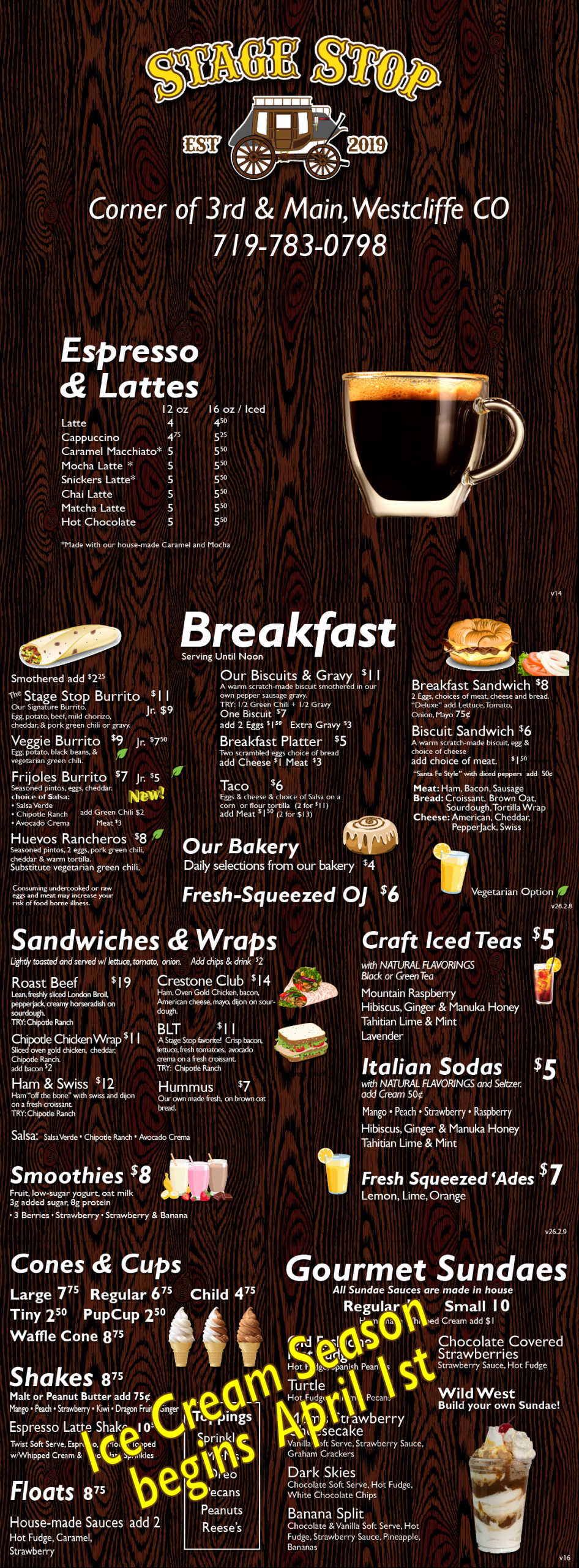 Stage Stop biscuits and pastries are baked fresh daily and the ice cream sauces, smoothie flavors and mochas are made in house. “We make everything from scratch and fresh to order,” explained Nancy. “You will notice the difference”